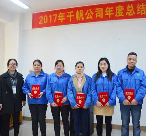 隨后,對2017年度涌現(xiàn)出的生產(chǎn)標兵、優(yōu)秀員工和優(yōu)秀管理干部依次進行表彰,優(yōu)秀管理干部蔣小輝經(jīng)理代表先進個人發(fā)表獲獎感言。